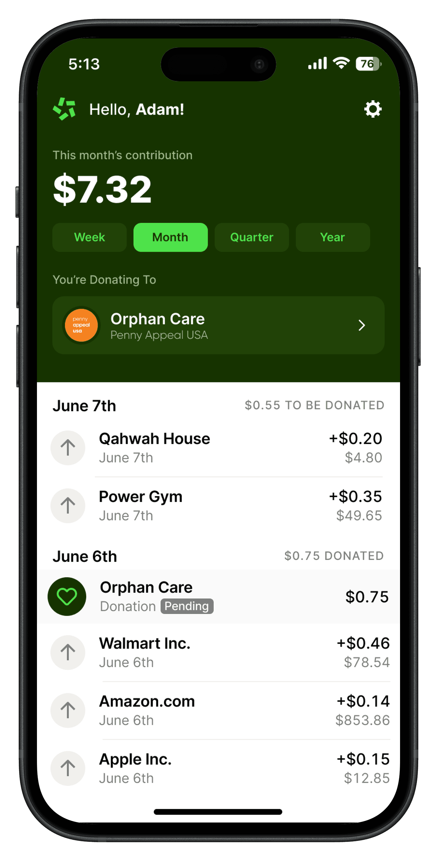 Baqi will donate the difference from your checking account to your chosen campaign.